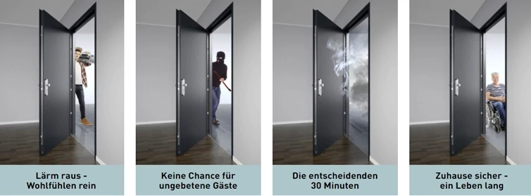 - Auch Schallschutztüren, die Feuer und Lärm abhalten sind erhältlich